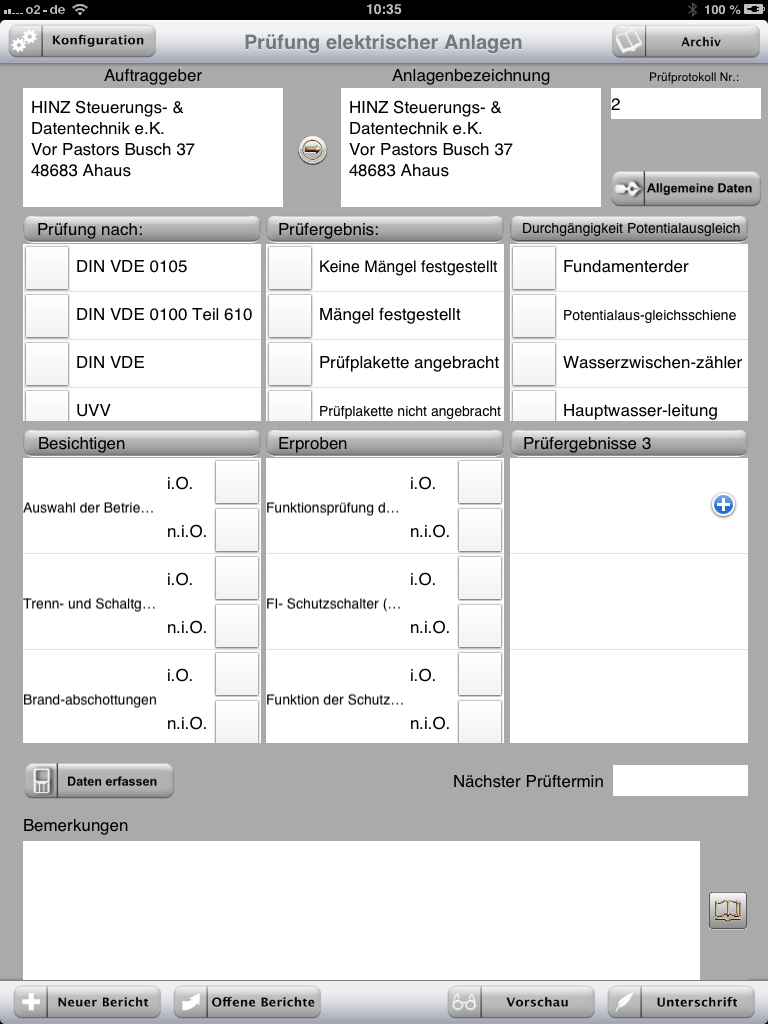Anhand unseres Prüf- Protokolls beschreiben wir auf den unten aufgeführten Seiten den kompletten Funktionsumfang der App.