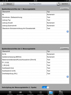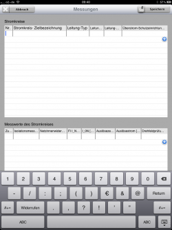 Ihnen stehen 3 Einfach- Checkboxen, 3 Zweifach- Checkboxen, 16 Zusatzfelder, 2 Messwerttabellen und 1 Bemerkungsfeld zu Verfügung.
